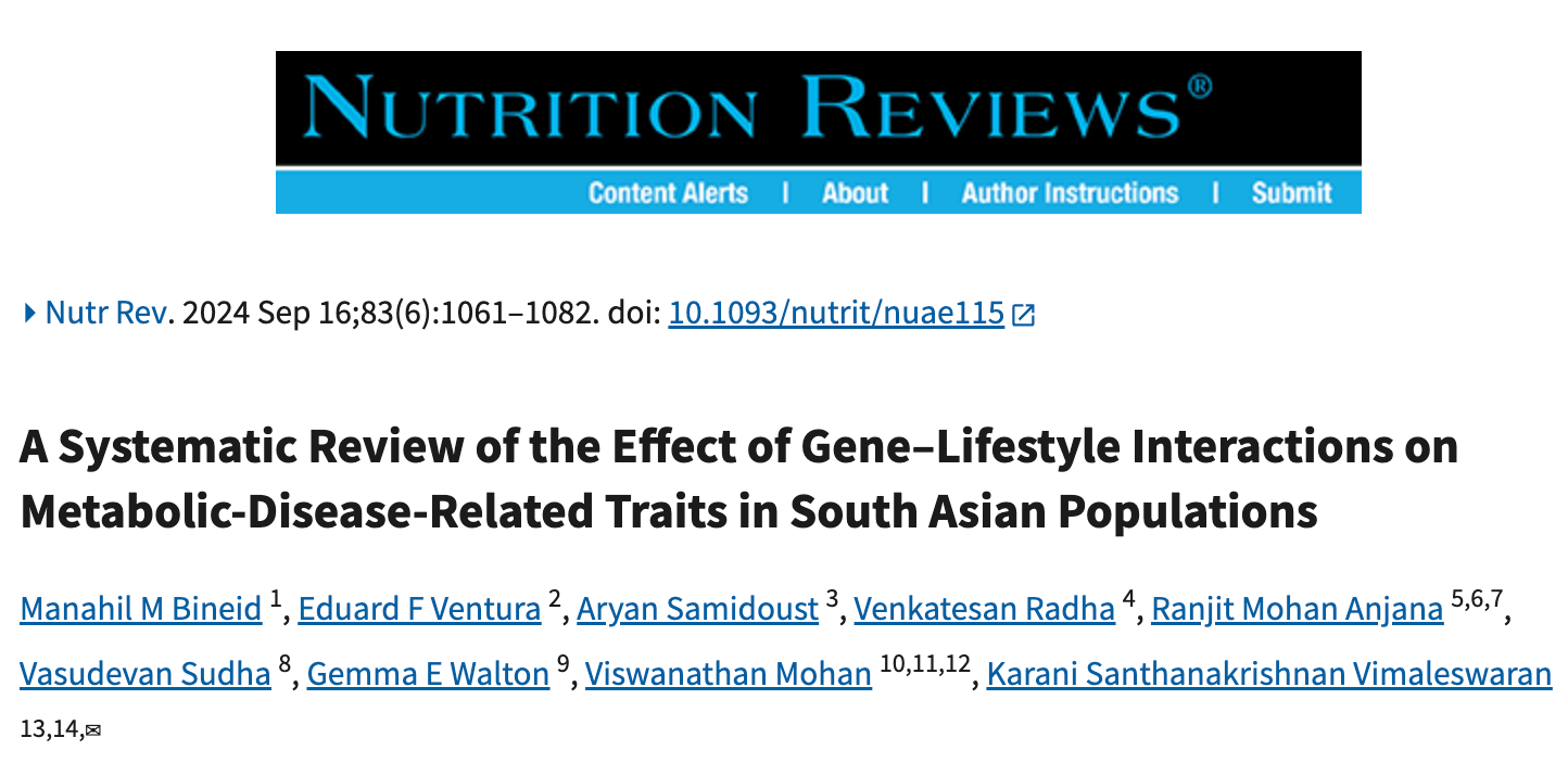 A 2024 systematic review in Nutrition Reviews analyzed 15 studies and found 132 significant gene-lifestyle interactions. These were from studies in India, Pakistan and Bangladesh while also including studies on South Asian diaspora in Singapore and Canada (broad!).