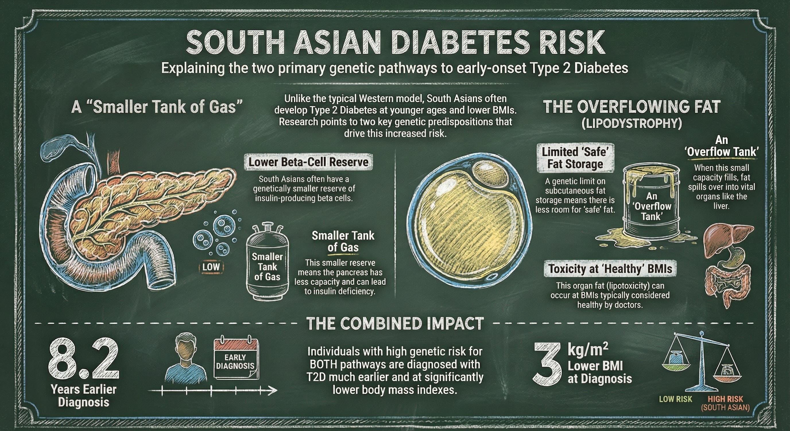 The Phenotype (The Fragile Pancreas): Unlike the typical Western model of robust insulin hypersecretion followed by burnout, South Asians often start with lower beta-cell reserve. You essentially have a smaller tank of gas to begin with.