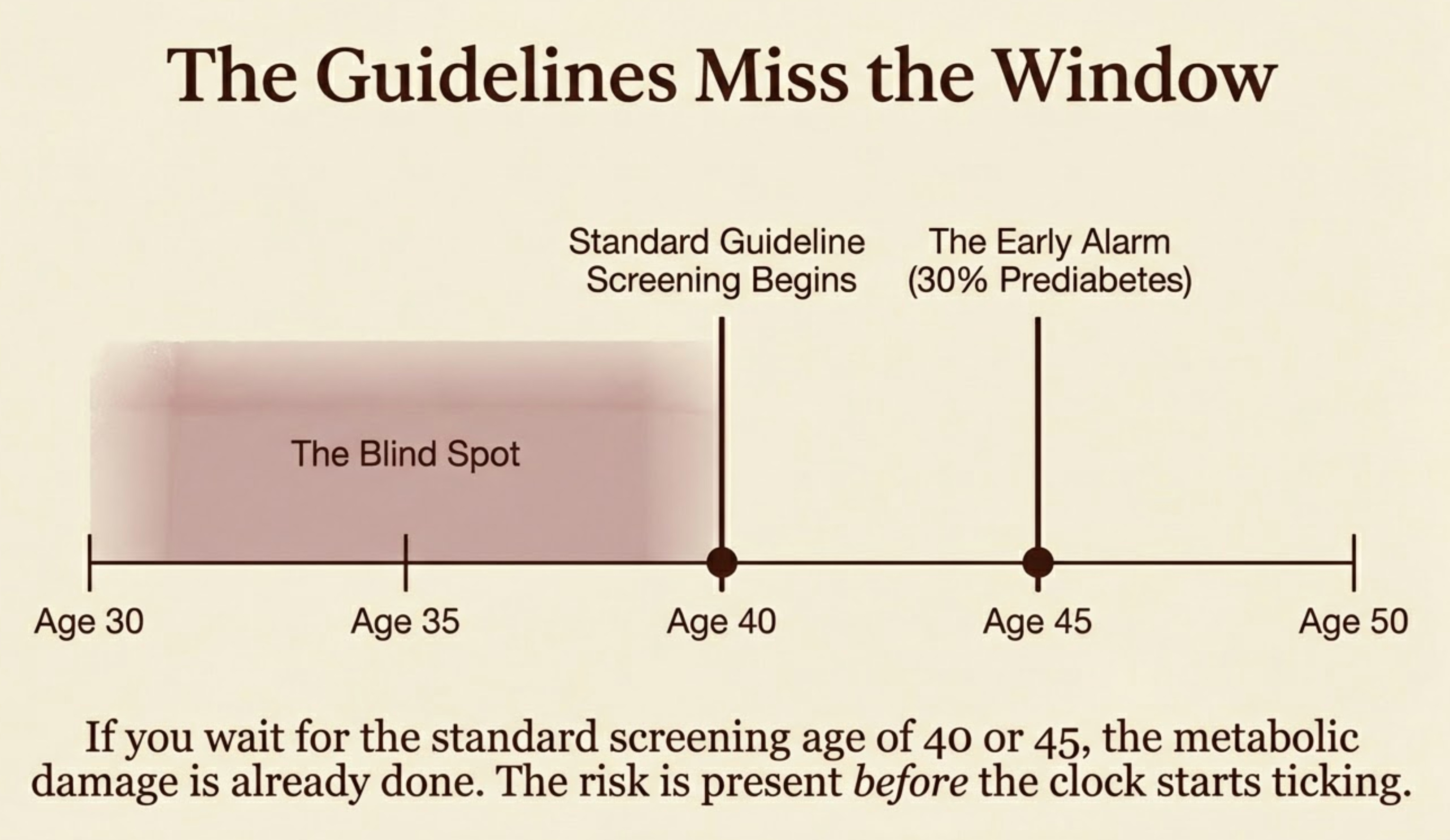 So what we’re measuring at age 45 is not a lifetime of good behavior. In many cases, it’s a recent conversion. And the Fragile Engine doesn’t care that you started eating well at 38. It remembers the decades before.