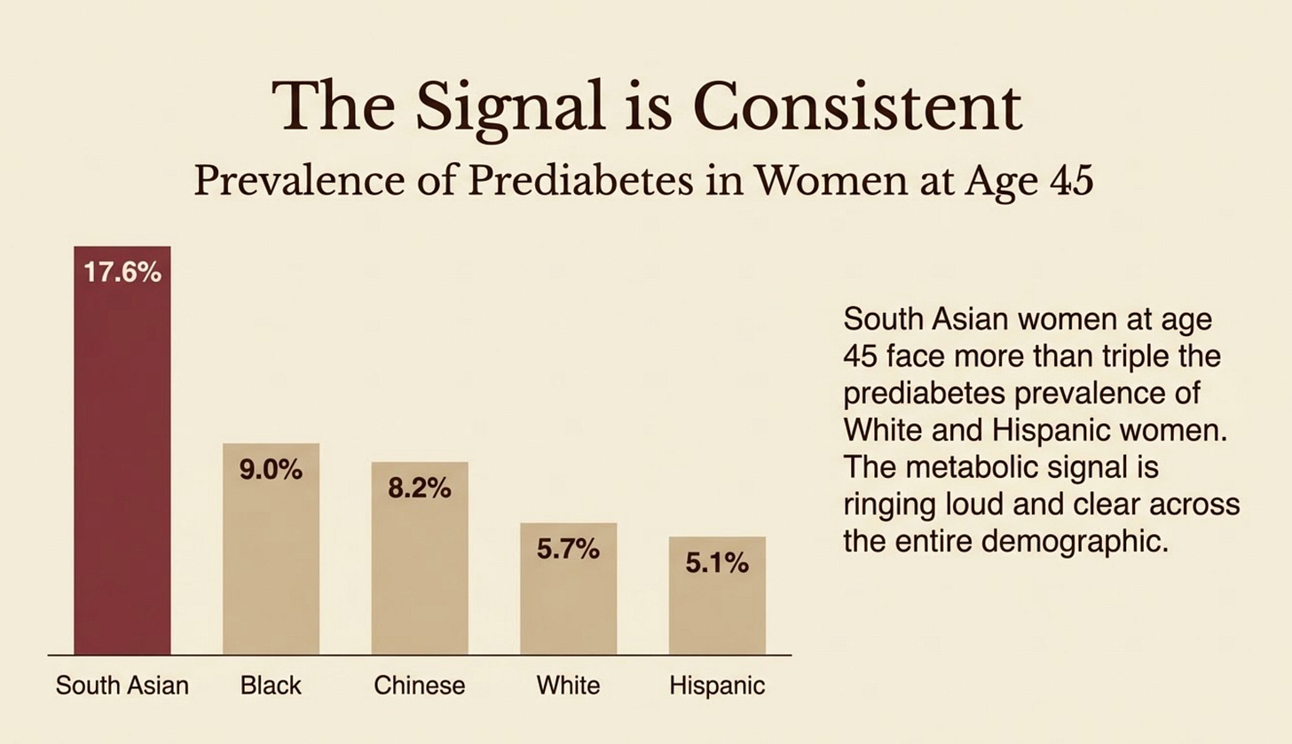 But the direction of the signal is clear. And it’s been pointing the same way for years, in MASALA, in UK Biobank, in Yajnik’s foundational thin-fat phenotype work. This isn’t a new alarm. It’s the same alarm, getting louder.